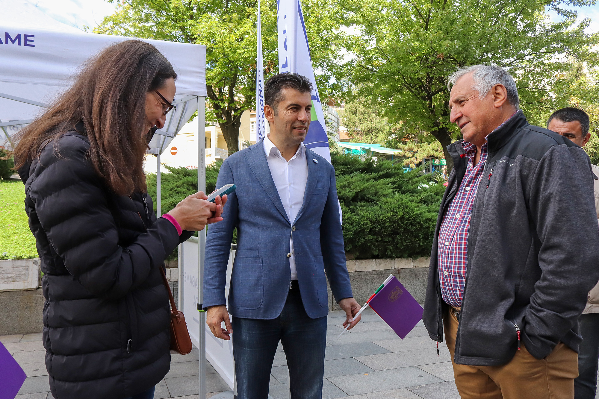 Бившият министър-председател сподели, че по време на обиколките си в страната възрастните хора им благодарят за увеличаването на пенсиите и подчерта, че усилията им в тази посока ще продължат и занапред. „Младите семейства видяха като първа стъпка безплатните детски градини, но очакват да има повече детски заведения. На много места хората споделят, че разчитат на нас в борбата с корупцията, защото с ГКПП „Капитан Андреево“ показахме, че можем и не ни е страх, но имаме още много работа да вършим. За това обещаваме, че първата институция, която ще направим работеща е КПКОНПИ. За да може в България да имаме една институция, която не се страхува от мафия, задкулисие и „големите на деня“, а ще прилага закона абсолютно равно пред всички“, каза още Петков. На въпрос дали ще има стабилен кабинет след изборите, посочи, че това зависи от избирателите.