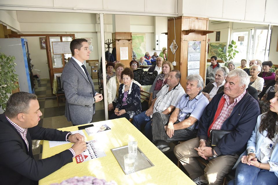 С песен го посрещат на следващата му среща – в клуба на пенсионера “Филип Тотю”. Там винаги са ме посрещали топло и сърдечно, признава Божанков. Настроението в клуба е приповдигнато, защото предната вечер хорът им отново е спечелил златен медал от певчески конкурс. Тук го очаква и голяма част от листата за общински съветници, в която над 75 % са нови лица за политиката, а над 40 % са млади хора под 40 години. “Въпреки трудностите създадохме обединение. Наясно сме, че заедно можем повече”, казва председателят на БСП Огнян Стоянов и получава одобрение от присъстващите. Те одобряват и намерението на Явор да запази добрите начинания от предишните години, но да привлече в управлението на града образовани хора с високо интелектуално ниво. “За следващите 7 години обемът на европейските фондове ще се увеличи със 7 %. Единствено от нас зависи доколко и какви хора ще изберем да управляват този ресурс”, посочи Божанков. И даде пример – ЕС е давал пари за градовете със замърсен въздух, за да могат домакинствата да преминат на нисковъглеродни начини за отопление. Заради грешка в документите на Община Г. Оряховица тя не е класирана и не получава средства. “Логично беше кметът да даде всичко от себе си – и заради околната среда, и заради икономиката на града, защото местните фирми създават именно такива инсталации. Но е факт – когато нямаш работещ екип, резултатът е отрицателен”, обяснява предприемчивият горнооряховец. Разговорът се завърта и около бездомните кучета, състоянието на тротоарите и остарялата дограма на клуба им, която пенсионерите години наред очакват да бъде подменена. Те се надяват и да бъдат облекчени в придвижването с градския транспорт, каквато практика имаше преди години.