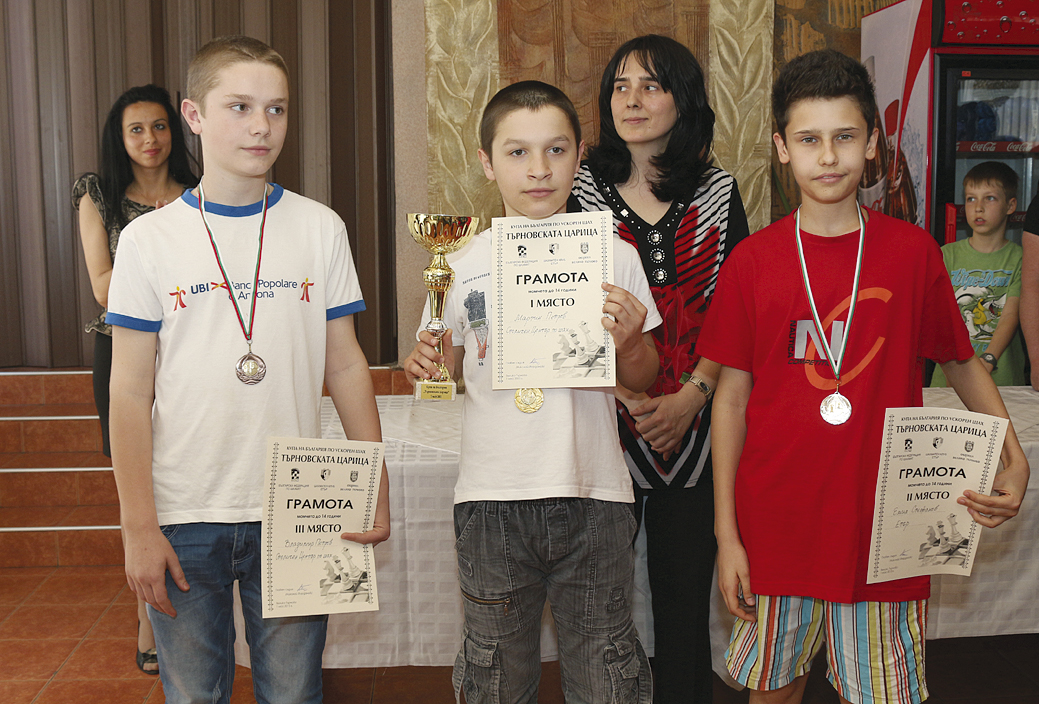 При момичетата първа е Доника Шивачева от “Тунджа” с 4 т. Етърците Мартин Тодоров и Мария Калбанова от “Етър” завършиха с актив от 2 т. Във възрастовата група момчета до 10 г. първите трима в крайното класиране приключиха борбата с по 5,5 т. Победител по показатели стана Антон Петров от Столичен център, Йордан Портокалски – “Виктори”, е втори, а Николай Чолаков – “Шах 21” е трети. Честта на домакините достойно защити Стефан Янев, който спечели 5 т., Кристиян Иванов и Стефан Тодоров останаха с по 3 т.
