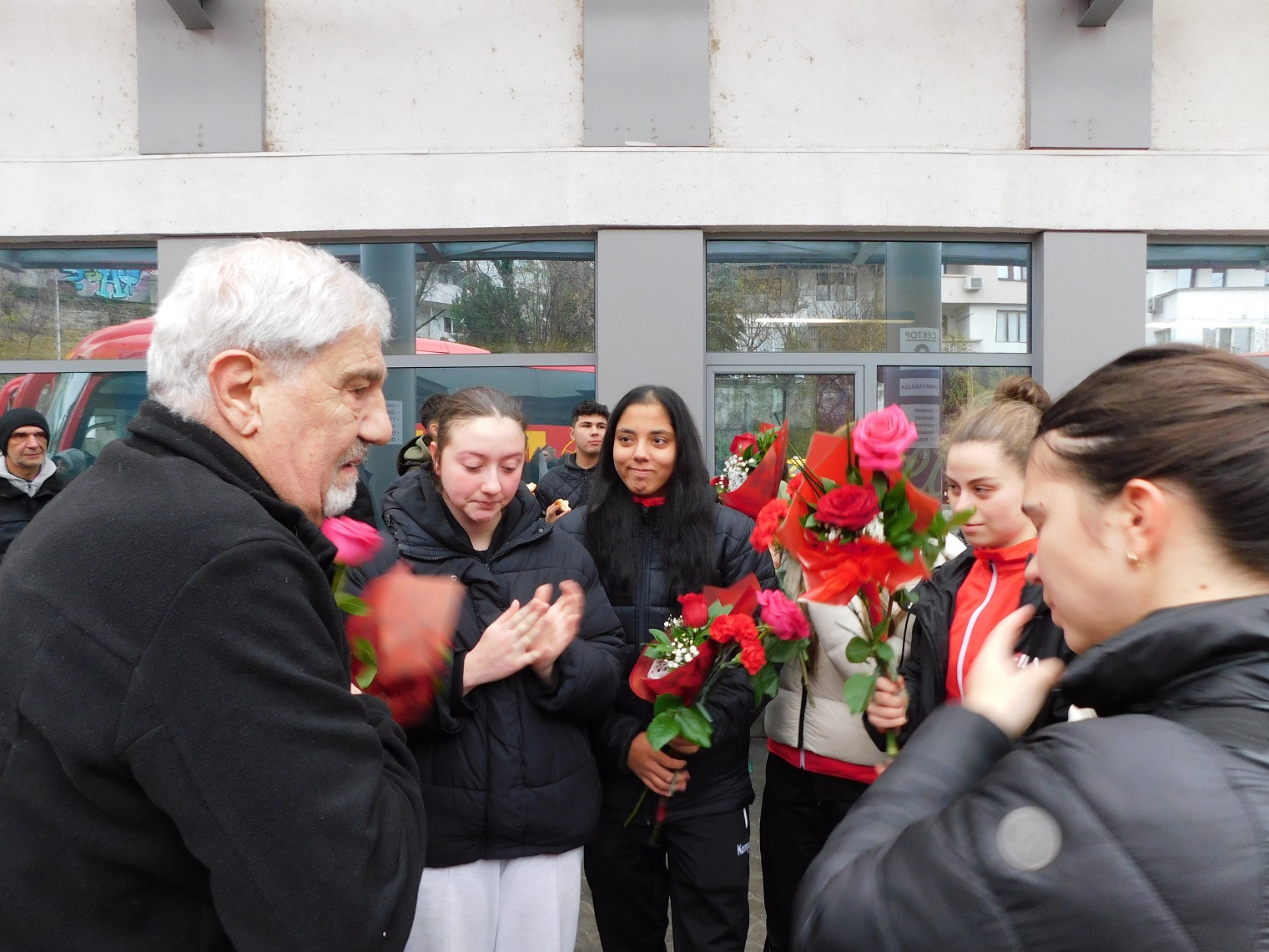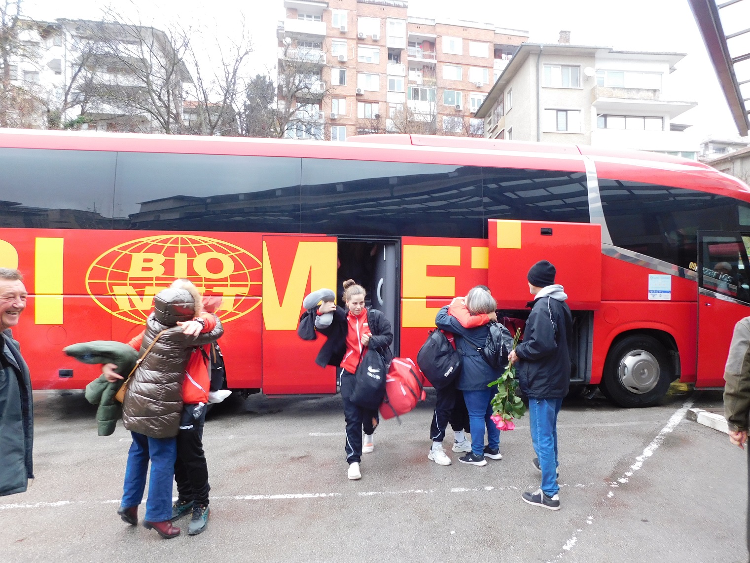 В 10:30 ч. днес те, заедно с още три съотборнички (две от „Бъки“ и една от „Бяла“) заедно с доктора на тима пристигнаха в старата столица. Без треньорката Маги Христова, която директно замина за Хасково, където 16-годишните етърки играят за Купа България.