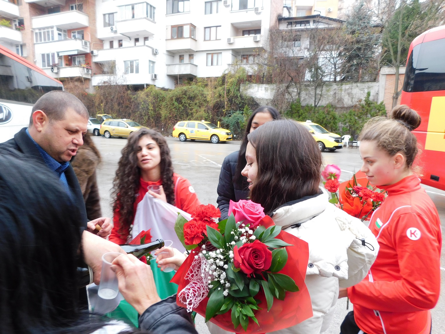 Сред посрещачите бе и Соня Богданова – най-титулованата хандбалистка в историята на „Етър-64“, а сега и шампионка с „Бяла“, чиято дъщеря Мартина Тодорова е в основата на успехите на етърки, а и на националния тим в нейната възраст. „Първо се радвам, че всички се прибраха живи и здрави! Осем мача са много, абсолютен респект към децата и треньорката, защото успя да ги сплоти. Едно голямо браво!“, заяви Соня Богданова.