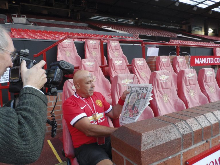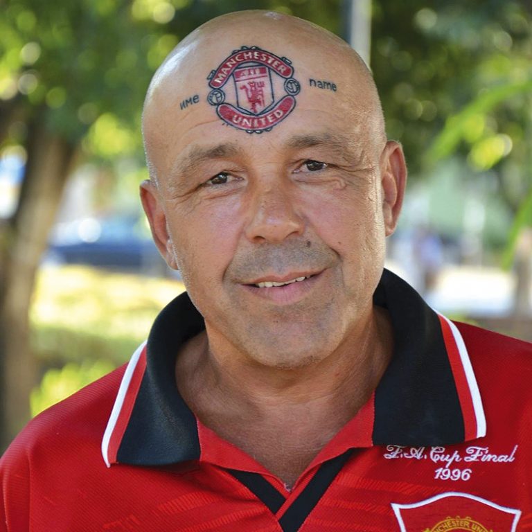 62-годишният Манчестър, който по рождение е кръстен Марин Здравков Левиджов, даже си татуира на челото емблемата на “червените дяволи”. Обичаше да се хвали, че татусът го прави популярен и зад граница. Най-закленият фен на “Юнайтед” получава покана от най-четения и високотиражен английски вестник “Сън” (“Sun”) да посети “Олд Трафорд”. Първоначалната уговорка е да получи достъп до съблекалнята на отбора, където да се срещне с футболистите, но предишната вечер взривове разтърсват два от хотелите в града и заради сигурността на футболните звезди публичните им изяви са спрени. За да не разочароват знаменития гост, домакините му предлагат разходка из целия стадион с персонален гид, а като подарък от клуба той получава фланелка със своето име.