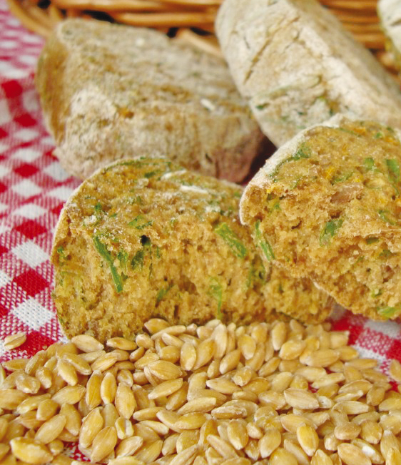 Продукти: 150 г покълнала елда, 1 голям домат, 1 глава кромид лук, 20 г смлян суров сусам, сминдух, сол.