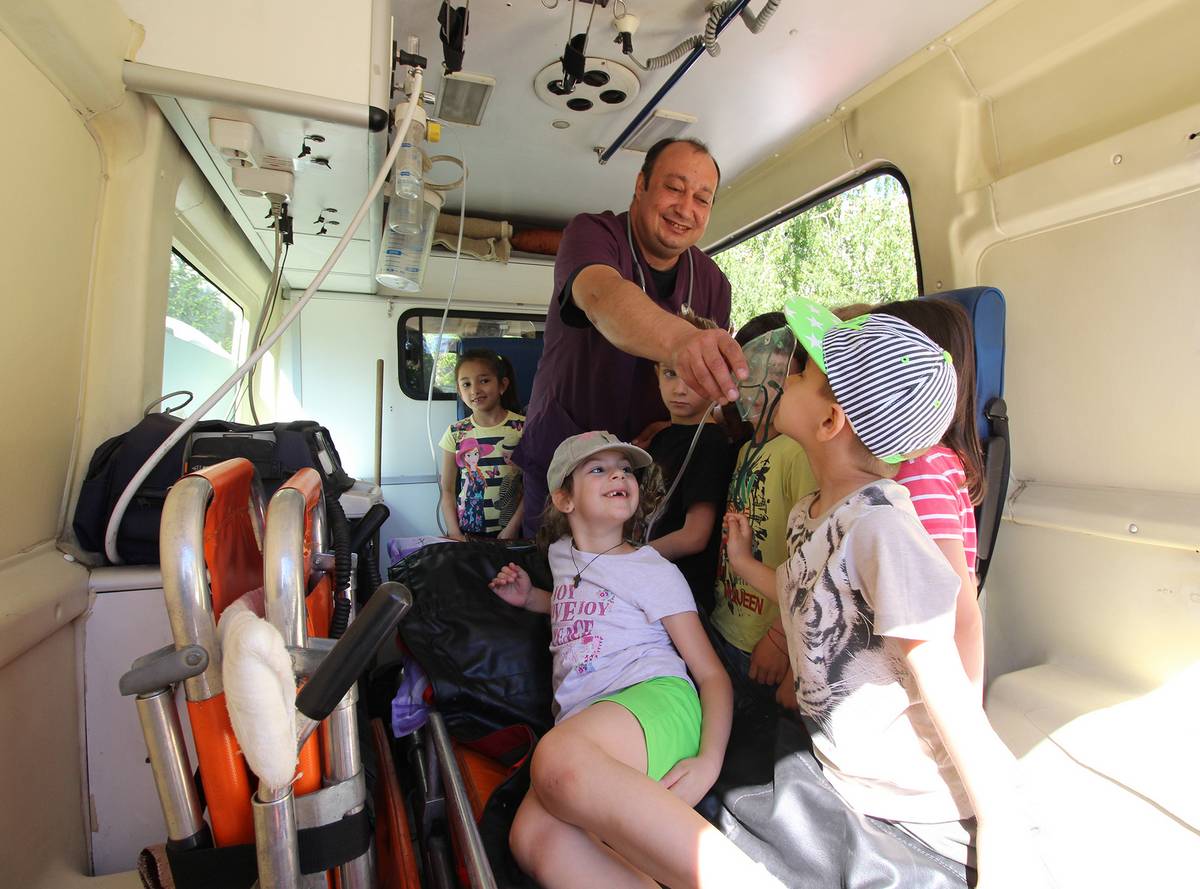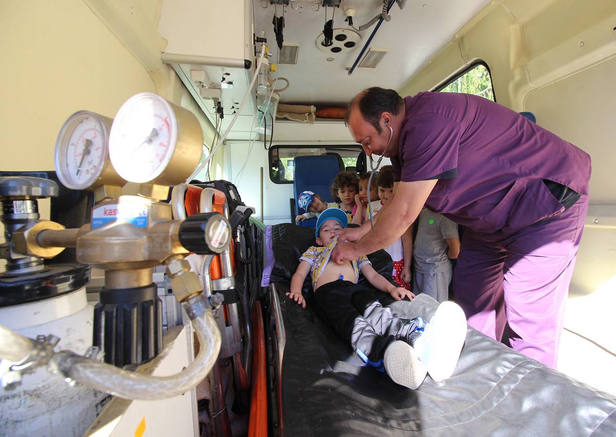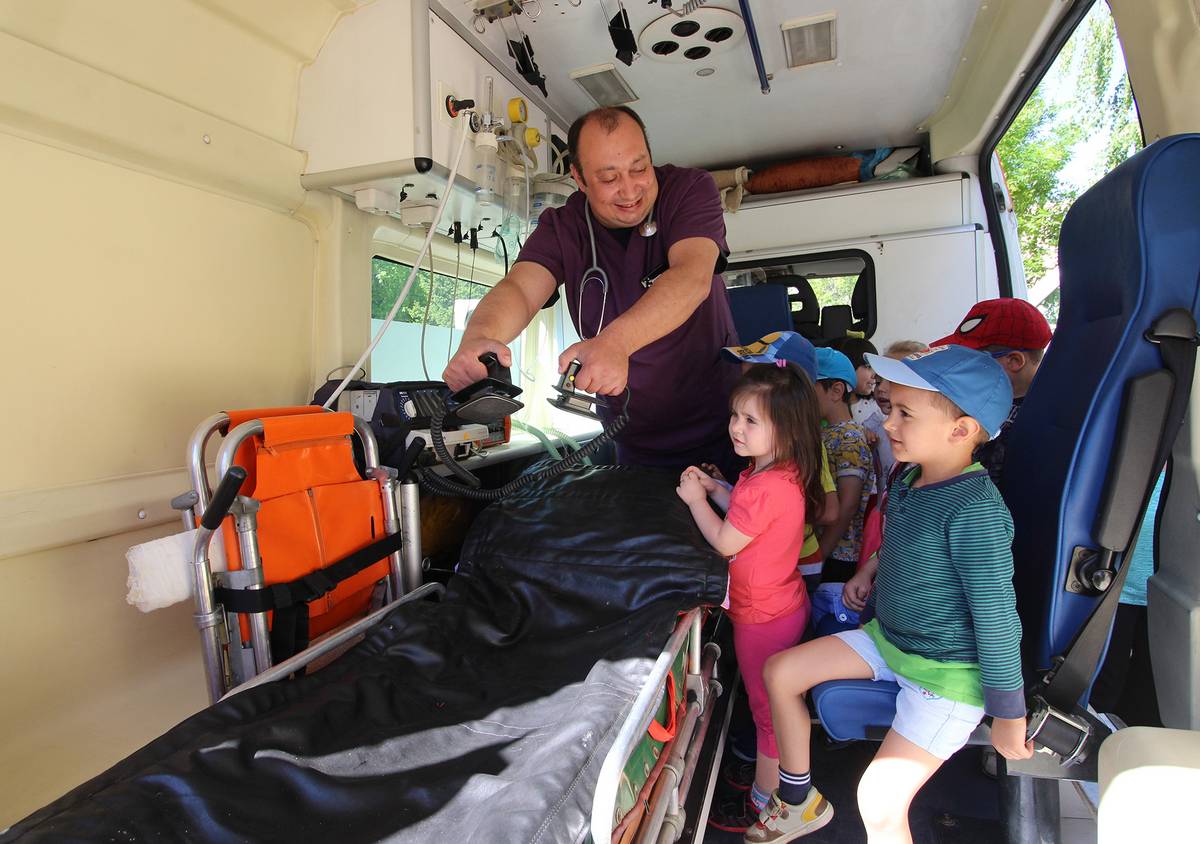 С голямо любопитство и емоции малчуганите се запознаха с екипа от Спешна помощ, а след това разгледаха подробно оборудването на линейката. Под ръководството на медиците децата боравиха с апарати за обдишване, включиха се в оказването на спешна медицинска помощ на пациент, разгледаха реанимационната апаратура, пуснаха и сирената, задаваха много въпроси.
