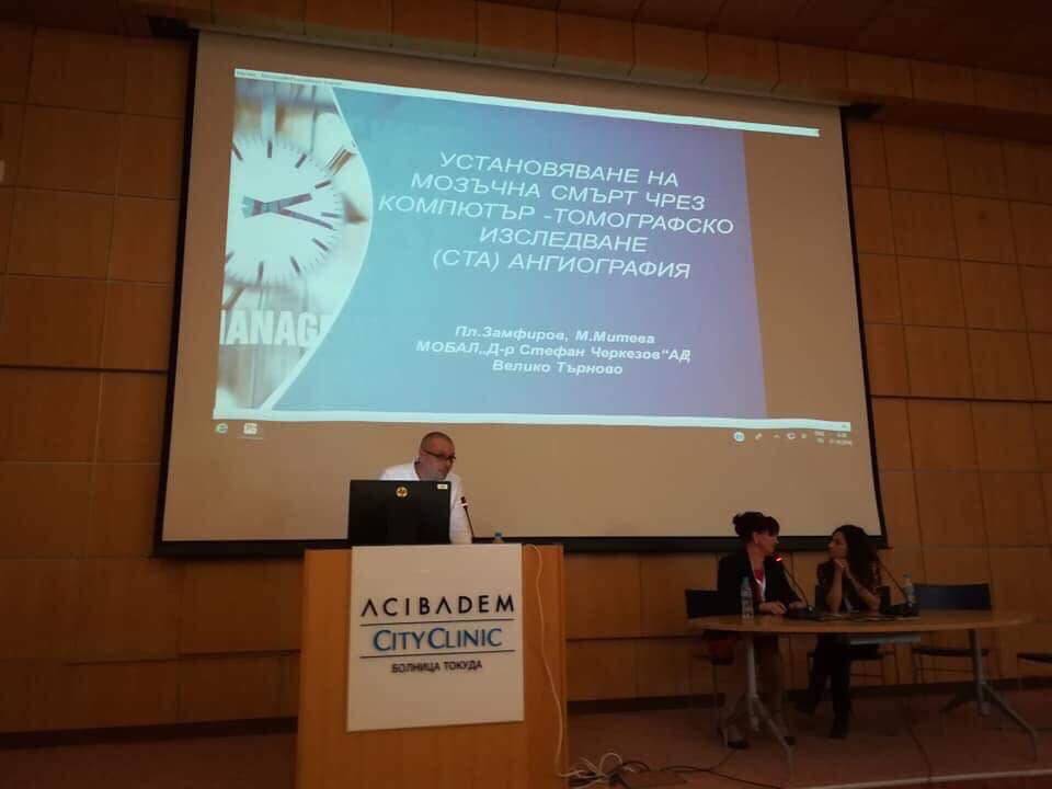 По време на конгреса търновските старши рентгенови лаборанти Мима Митева и Татяна Иванова презентираха своите проучвания и опит по темата “Нови възможности в диагностицирането на тумора на Klatskin при използване на MRCP техниката на магнитния резонанс”. Пред своите колеги от цялата страна рентгеновият лаборант Пламен Замфиров и ст. рентгеновия лаборант Мима Митева представиха презентация на тема “Установяване на мозъчна смърт чрез компютъртомографска ангиография”.