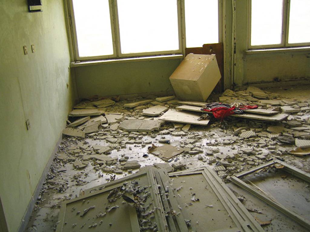 От целия инвентар на отделението на 11-ия етаж са останали само два дървени шкафа, два стола и осем извадени прозорци с дървена дограма. На места дупките на прозорците са затворени с шперплат. Същото е състоянието и на сервизните помещения в изоставените четири последни етажа на болницата. Изтръгнати са дори тоалетните чинии.